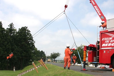 「照明装置(手前の黒・赤・黒)」「3連梯子(長さ8.7m)」「クレーン(2.93トン)」