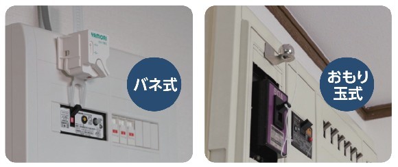 地震によりバネが作動したり、重りが落下することでバネの力や重力でブレーカーを落とす補助器具です。